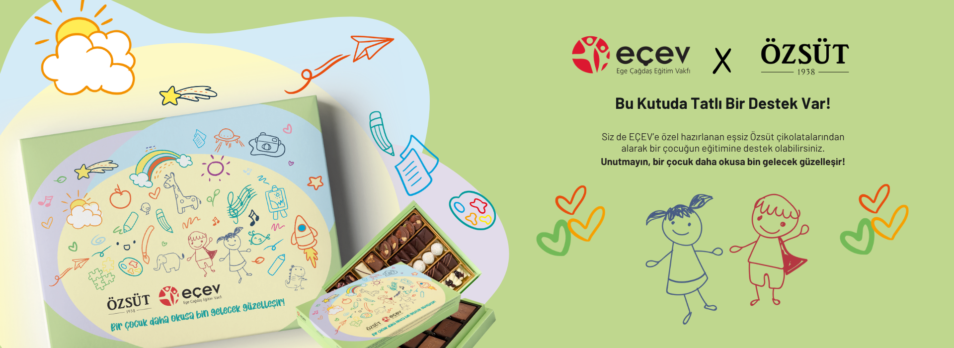Burs fonumuza katkı sağlamayı hedefleyerek satışa sunduğumuz İyilik Çikolatalarımız artık Özsüt kalitesiyle sizlerle! Şimdilik İzmir’de seçili şubelerde olan çikolatalarımızı satın alarak olanakları kısıtlı öğrencilerin de eğitimine destek olabilirsiniz.